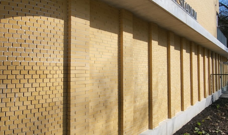 Les briques de parement sont jaune tendre avec de légères irrégularités, colorées dans la masse.