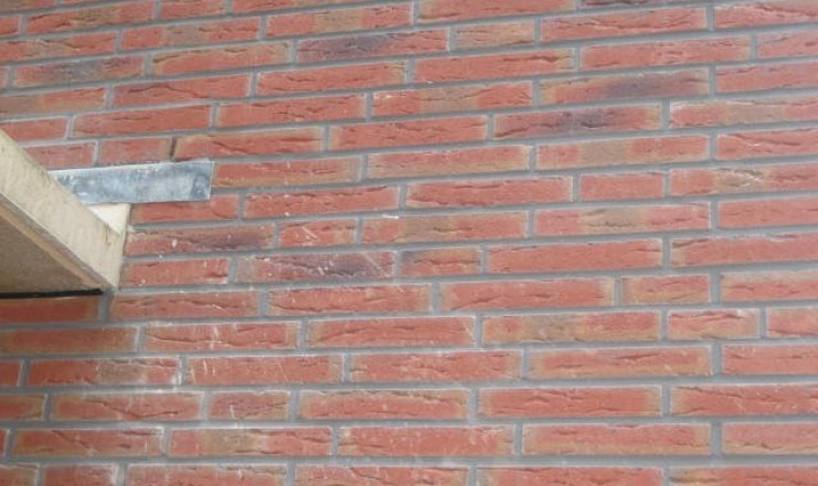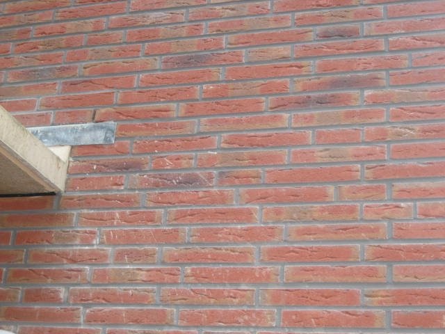 De gevelstenen zijn donkerrood, in de massa gekleurd, met paarse nuanceringen.